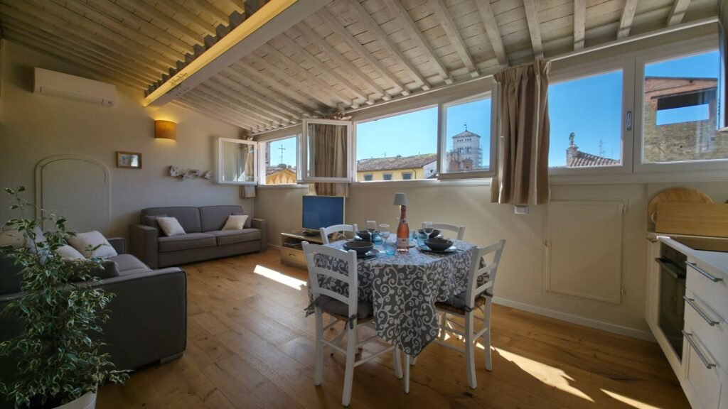 Bellavista Penthouse is an elegant, bright apartment located in the heart of Lucca, just a few steps from the city’s most charming squares, the Renaissance walls and all main attractions.